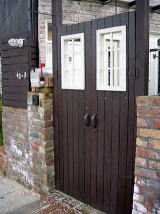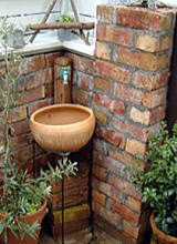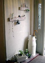 アンティークレンガを壁に貼り、扉を交換。コンクリートだった床にもレンガを敷きつめた。 |